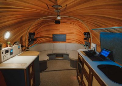 The Pod blends innovation with craft. Every detail has been carefully considered, from acoustics and layout to comfort and visual presence. This is not a converted trailer. It is a purpose built mobile studio that reflects the same care, design discipline, and attention to detail found across the Timeless range. The result is a space that feels as good to work in as it looks on camera.